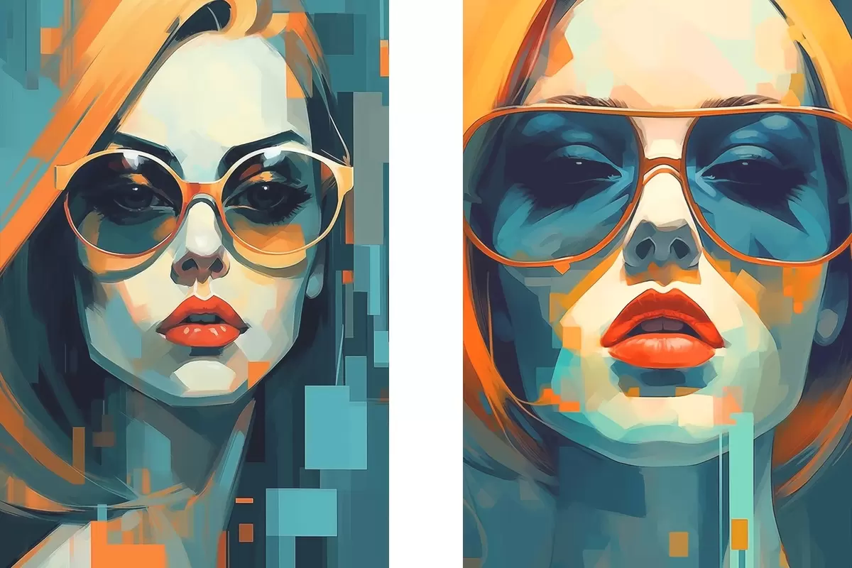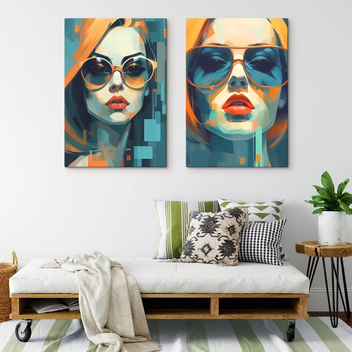 Maalid Naisportreed prillidega digitaalse abstraktsiooni stiilis Nr m00587