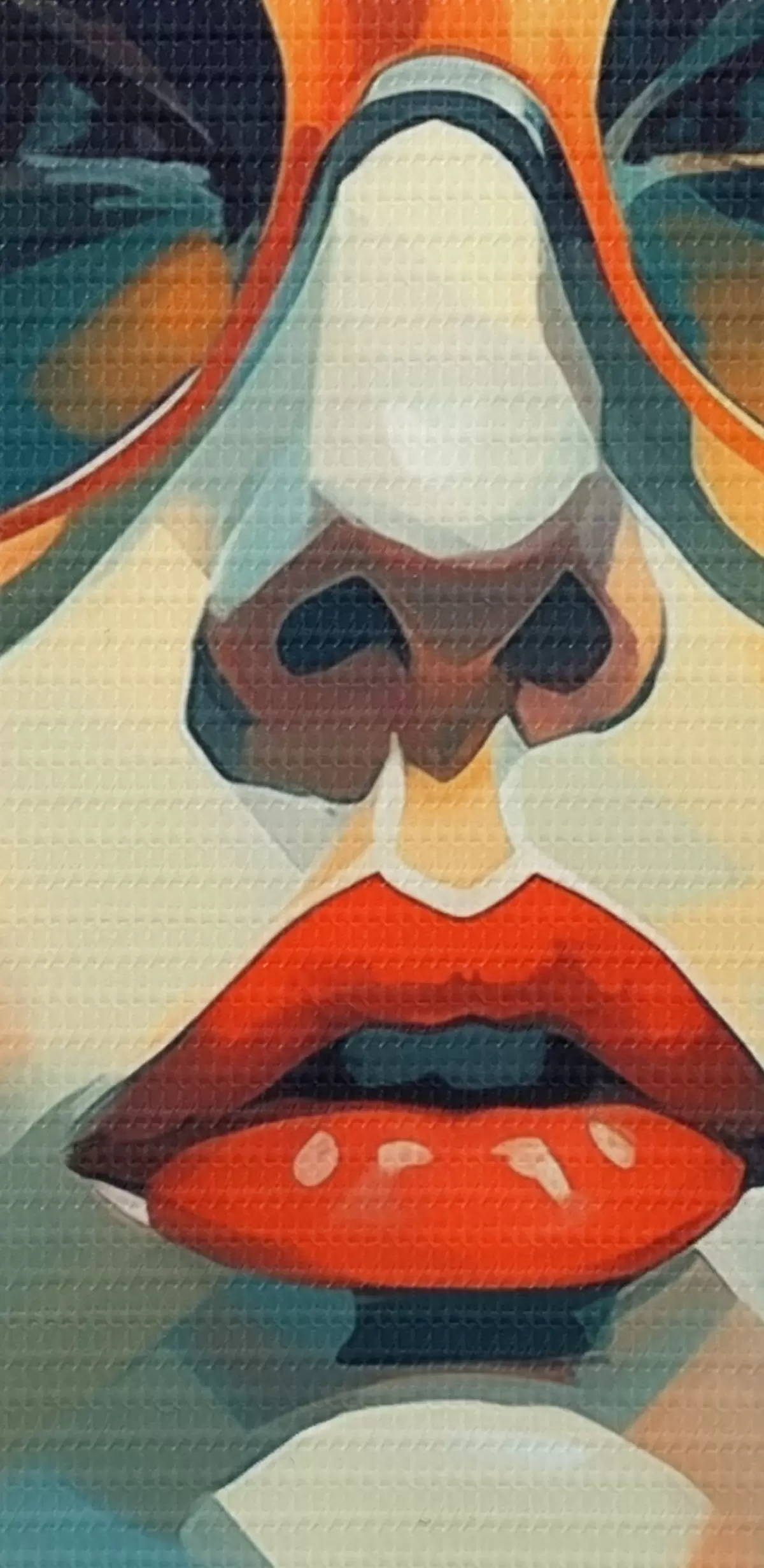Selle lõuendi peenike niidipunus meenutab professionaalse kunstniku lõuendi pinda.