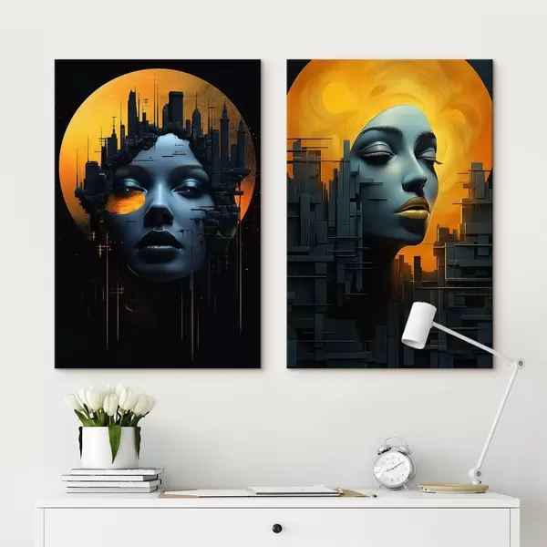 Maalid Tüdruku portree abstraktsel linna taustal Nr m00618