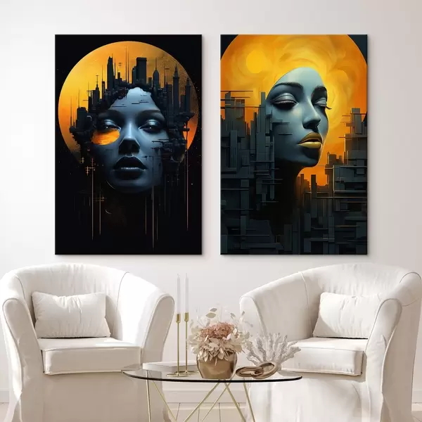 Maalid Tüdruku portree abstraktsel linna taustal Nr m00618
