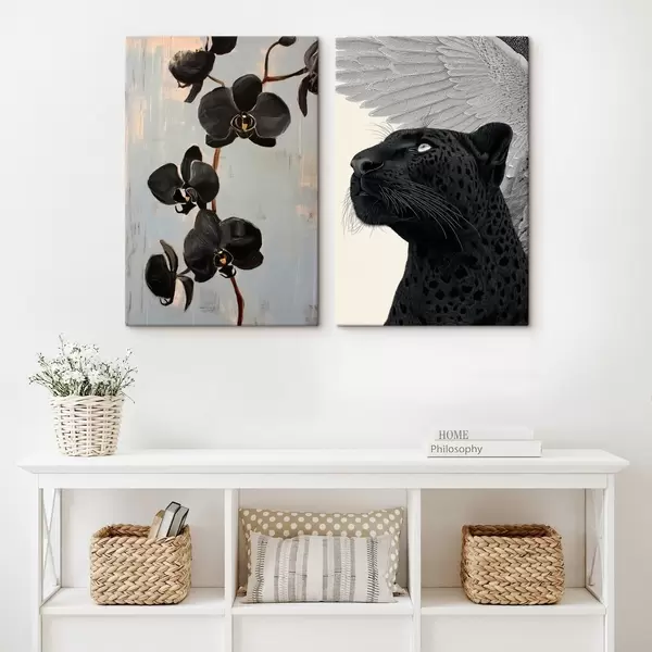 Maalid Tumedad orhideed ja tiibloomad: kunstiline kompositsioon Nr m00640