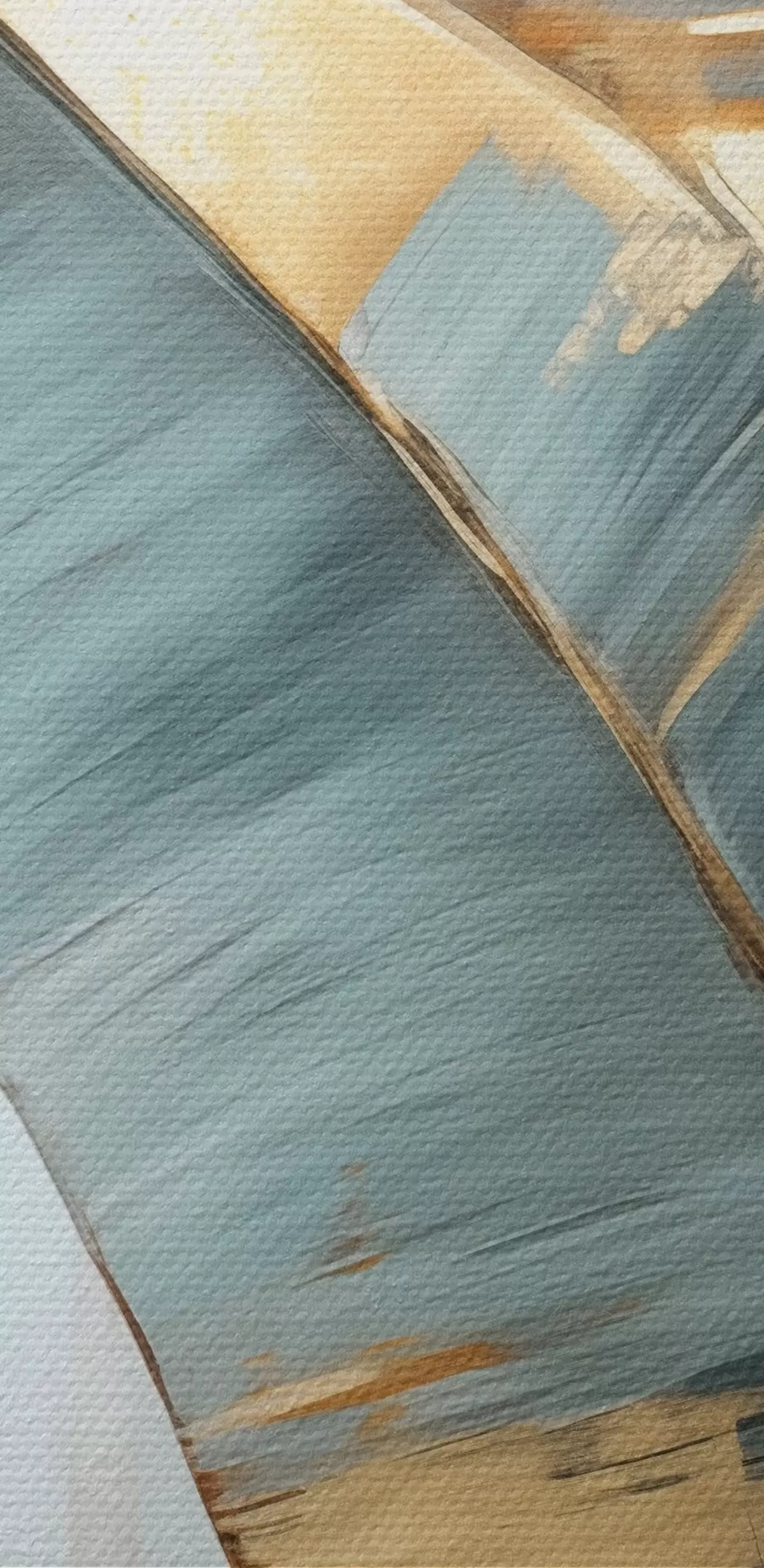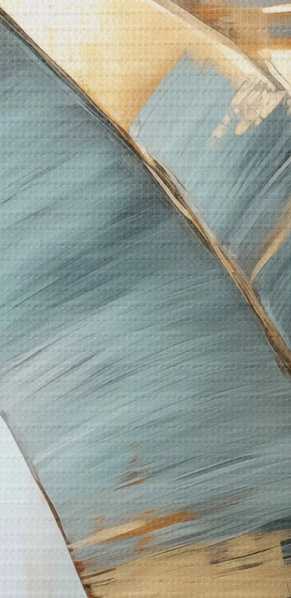 Maalid Valge abstraktse taustaga komplekt sinise, halli ja kollase värvi banaanilehti, millel on nähtavad pintslitõmbed Nr m00645