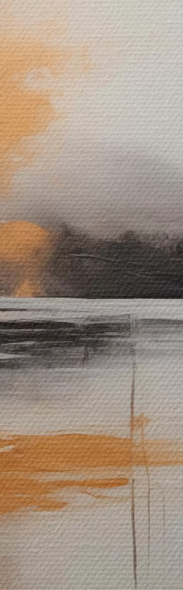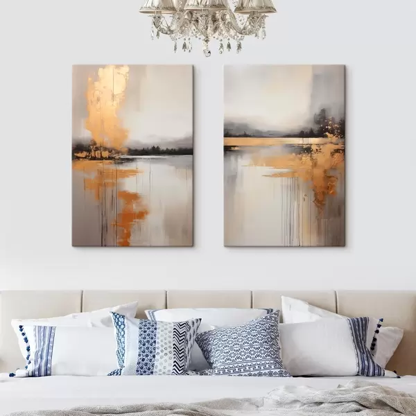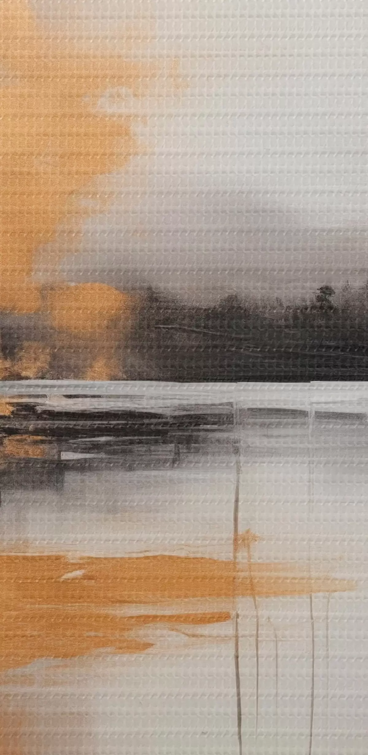 Maalid Abstraktne maastik järve, puu ja kollase uduga , vesi peegeldab ja pilvine taevas Nr m00657