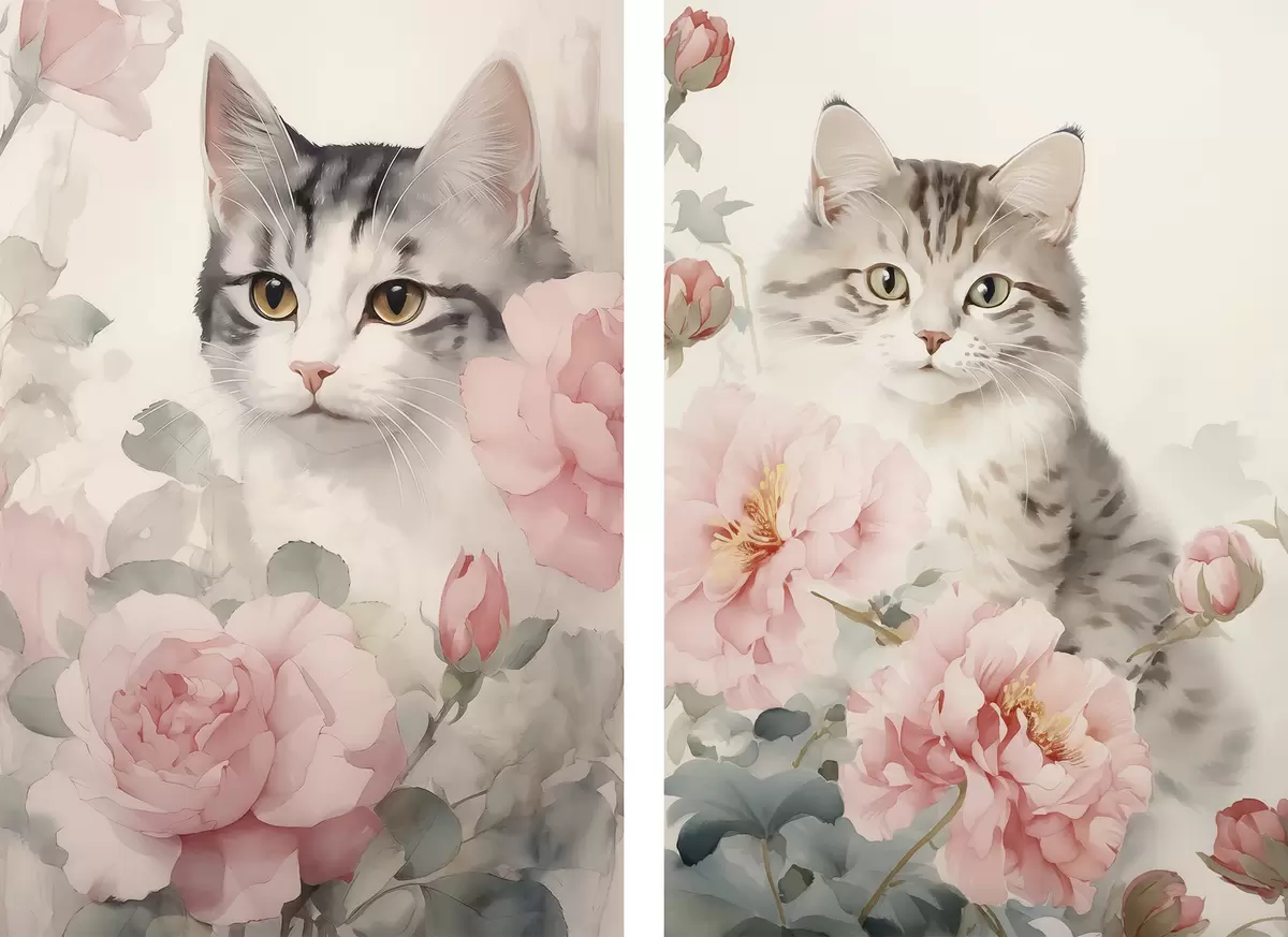 Maalid Kass lillede vahel Nr m00676