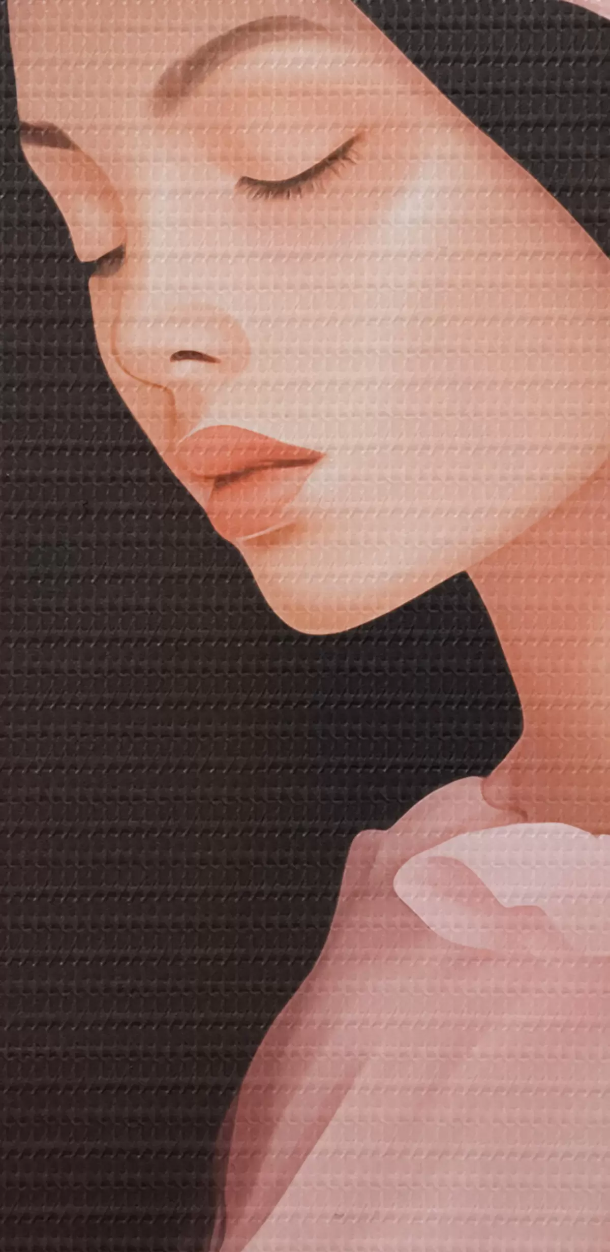 Selle lõuendi peenike niidipunus meenutab professionaalse kunstniku lõuendi pinda.