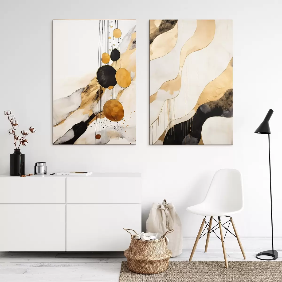 Maalid Abstraktne kompositsioon mustade ja oranžide ringidega Nr m00684