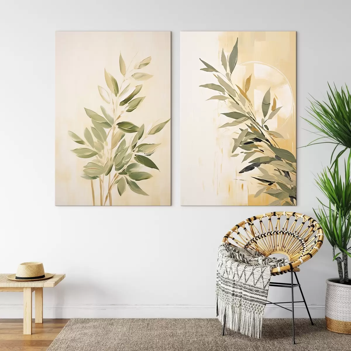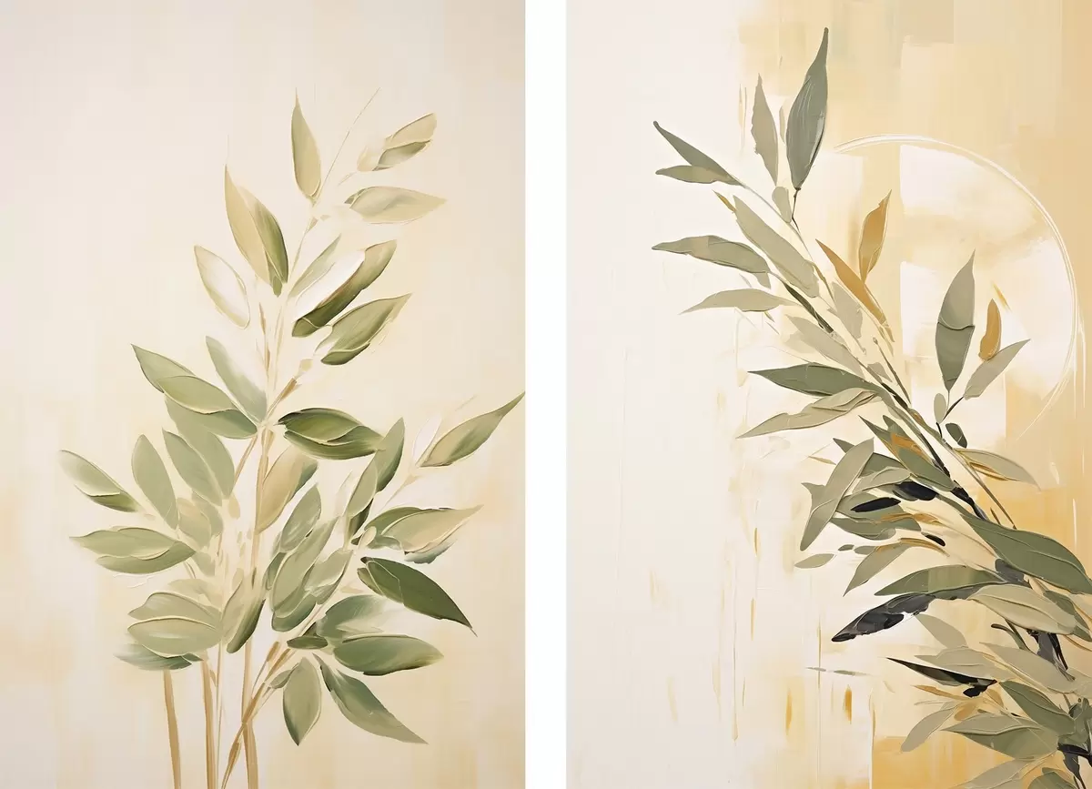 Maalid Roheliste lehtedega botaaniline haru soojal taustal Nr m00686
