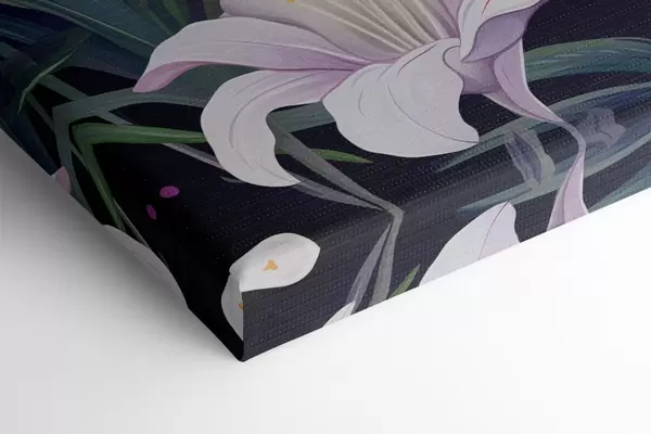 Maalid Õrnad roosad liiliad roheliste lehtedega heledal ja tumedal taustal Nr m00689