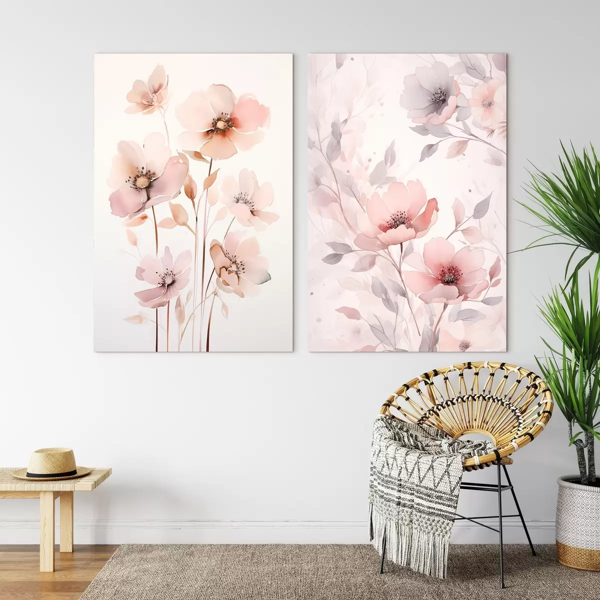 Maalid Vesivärvi roosad lilled õhukestel varrastel Nr m00690