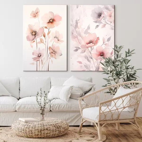 Maalid Vesivärvi roosad lilled õhukestel varrastel Nr m00690