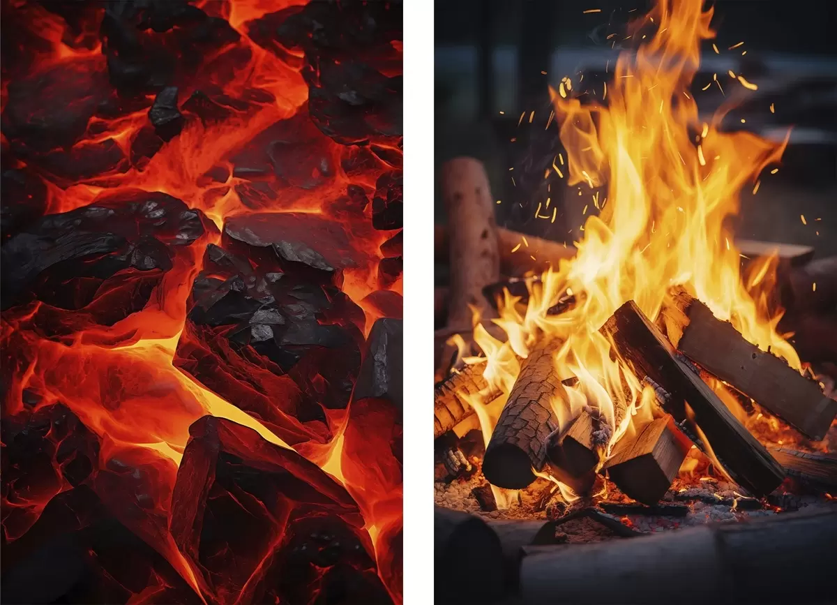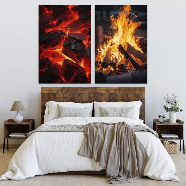 Maalid Põlevad söed ja leegitsev tuli pimedas Nr m00696