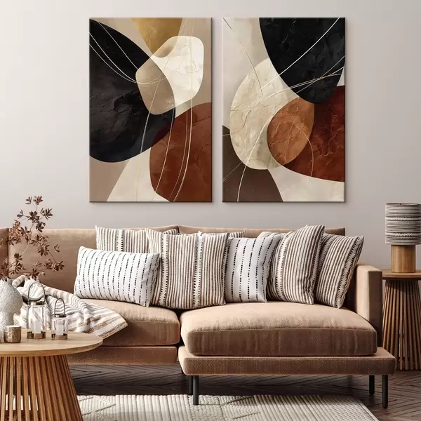 Maalid Geomeetrilised ovaalid soojas värvipalettis kollaste joontega Nr m00763