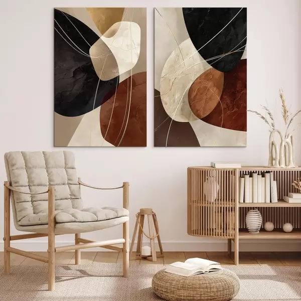 Maalid Geomeetrilised ovaalid soojas värvipalettis kollaste joontega Nr m00763