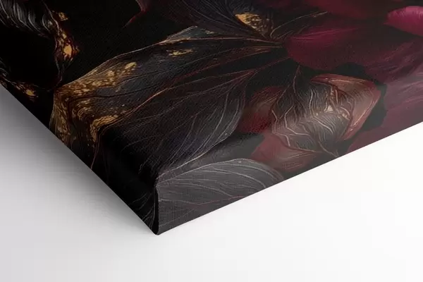 Maalid Burgundia peonid ja kuu peaga siluett mustal taustal Nr m00765