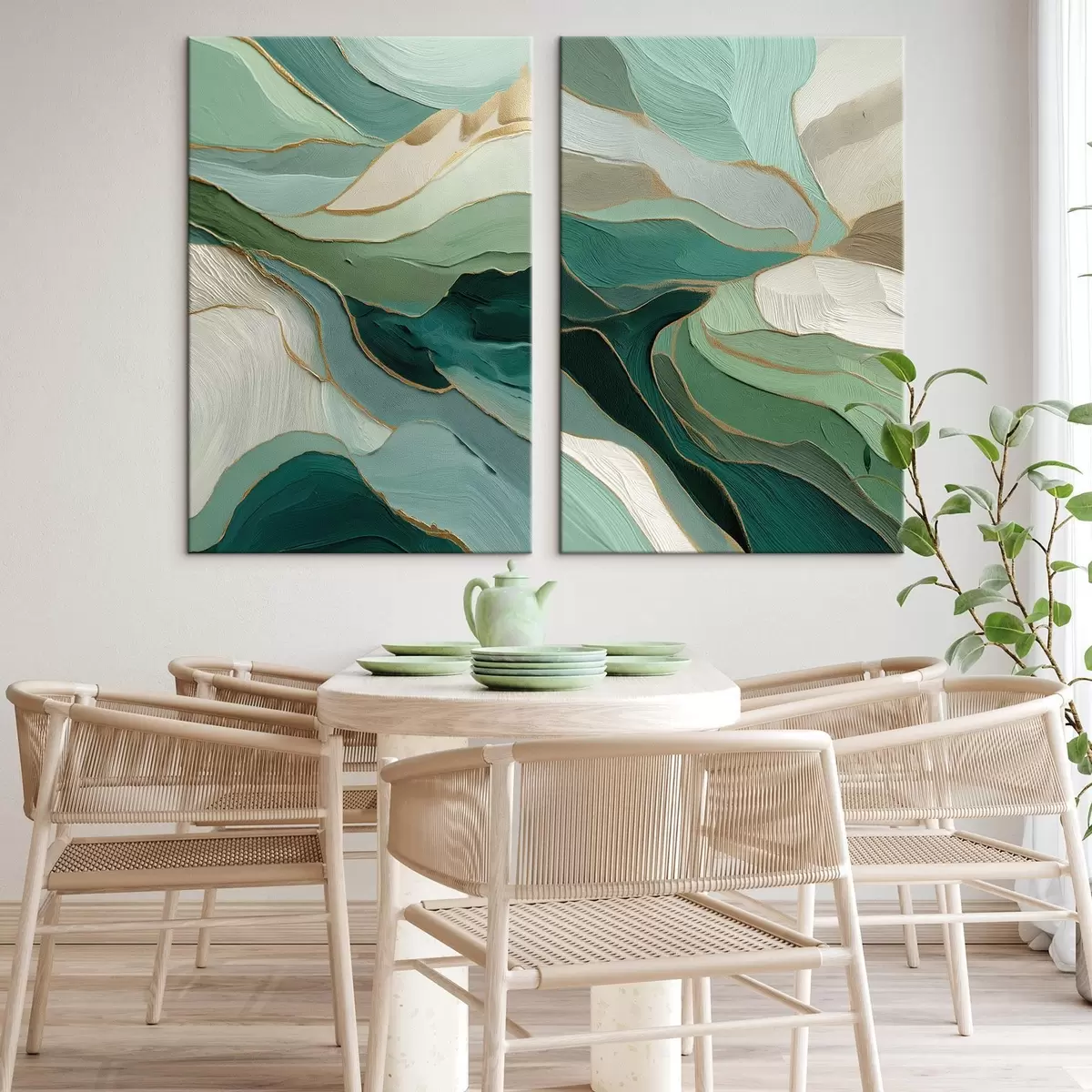 Maalid Smaragdroheline kihiline abstraktsioon kollase kontuuriga Nr m00766
