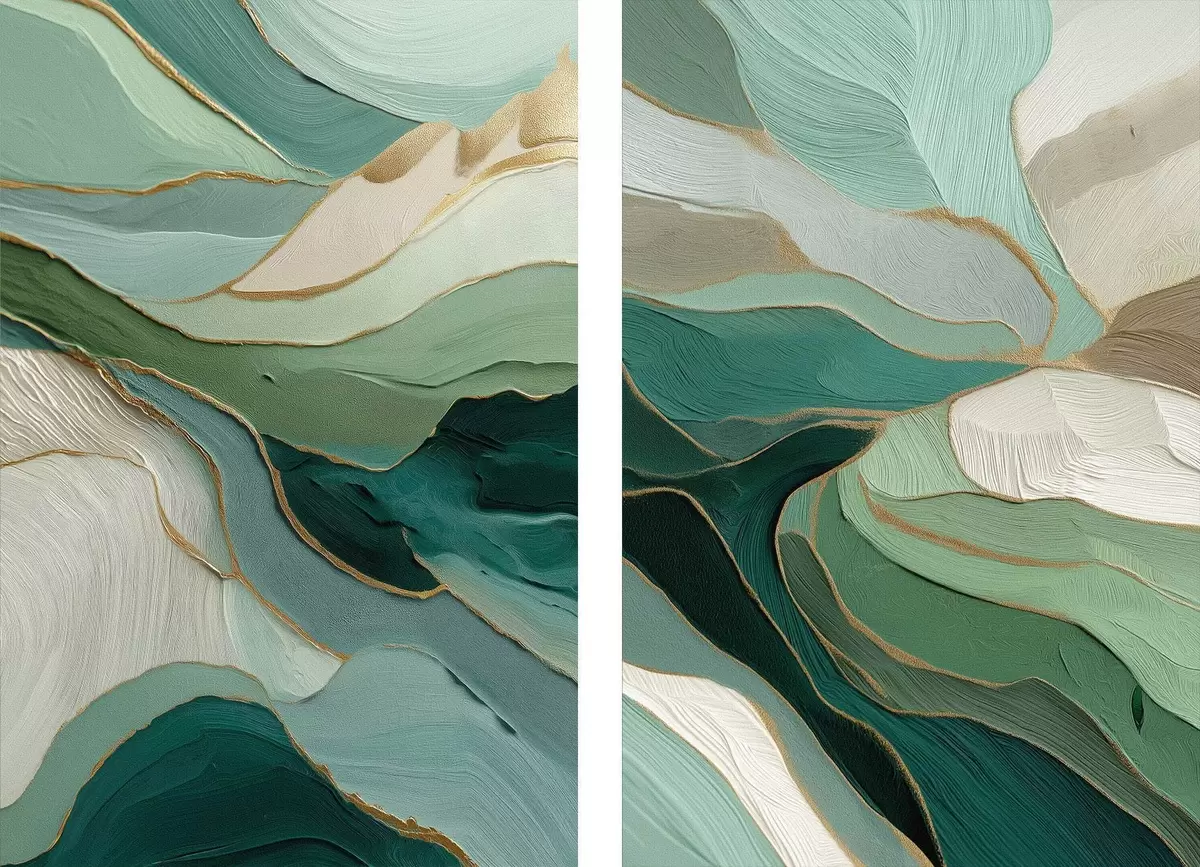 Maalid Smaragdroheline kihiline abstraktsioon kollase kontuuriga Nr m00766