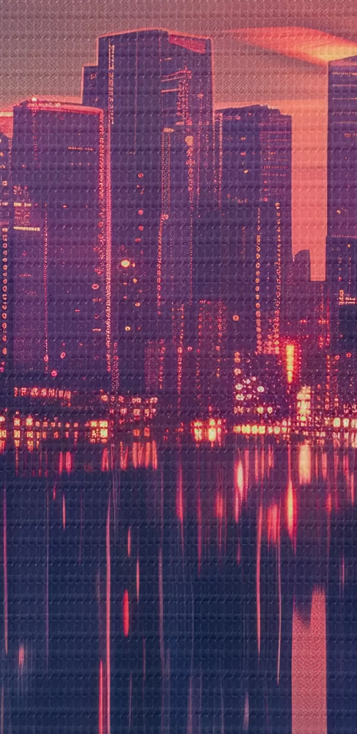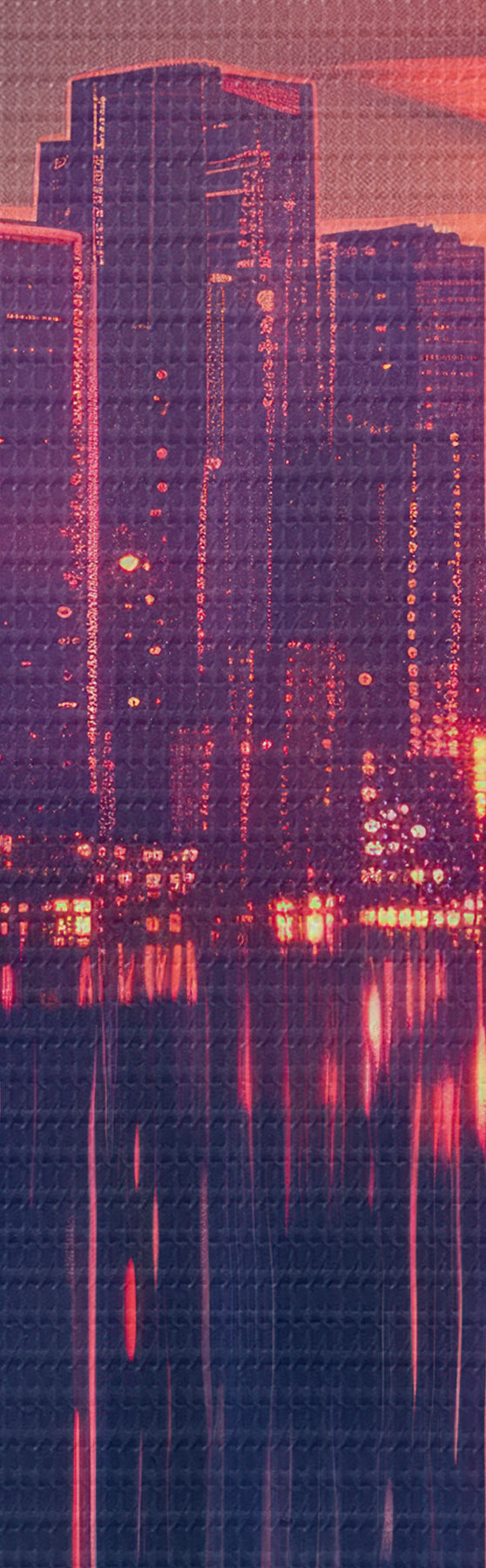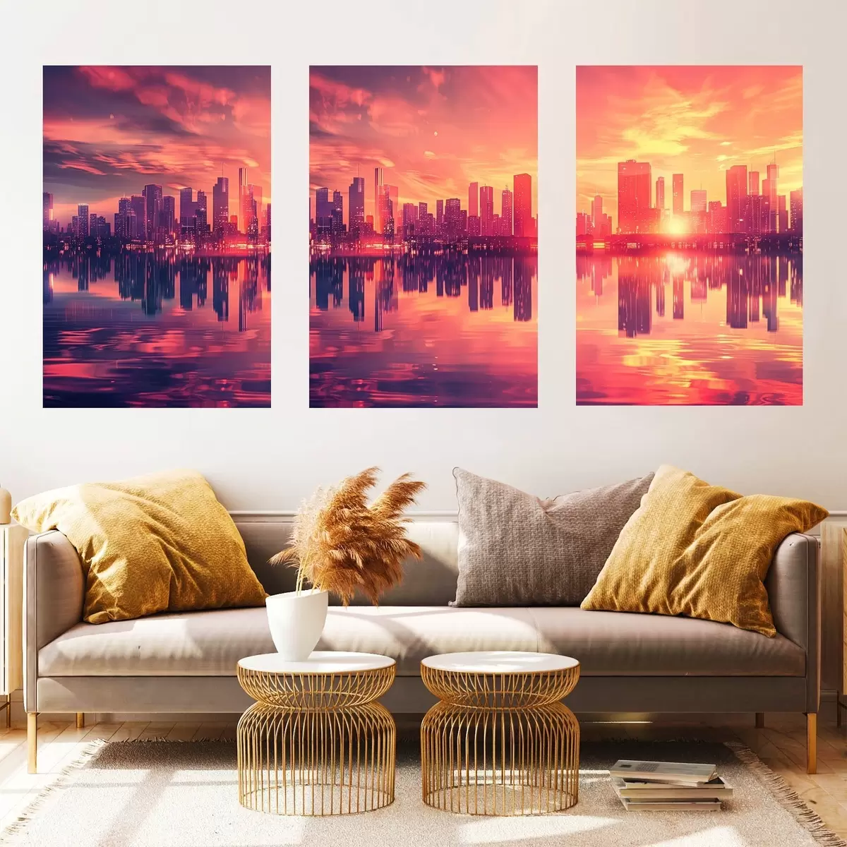 Maalid Romantiline päikeseloojang modernse linna taustal Nr m00784