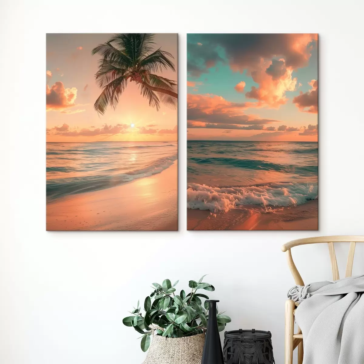Maalid Päikeseloojang mere rannikul koos lainete vaatega Nr m00787
