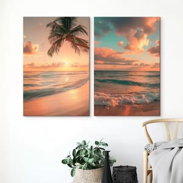 Maalid Päikeseloojang mere rannikul koos lainete vaatega Nr m00787