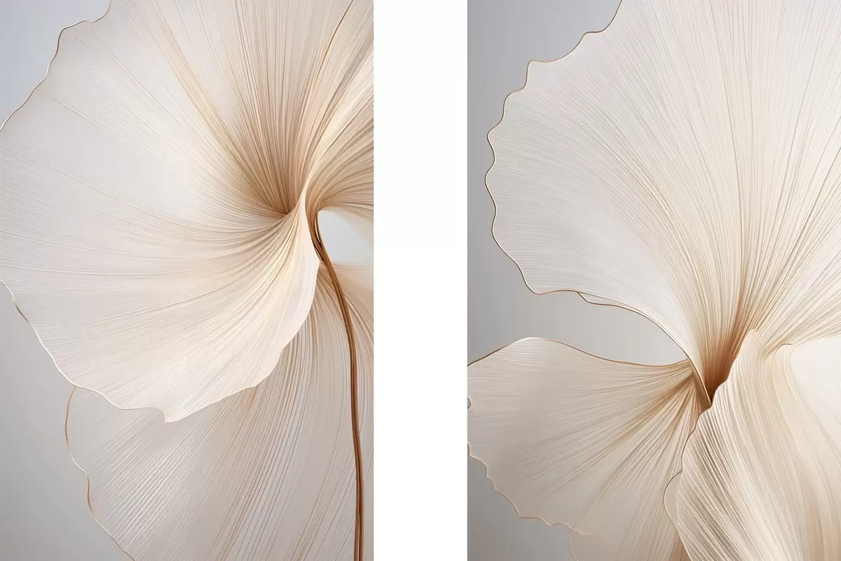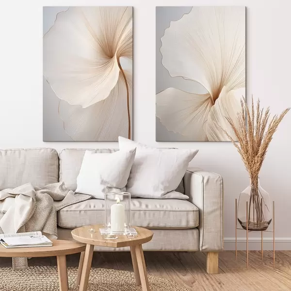 Maalid Abstraktsed lilled õhukeste, õrnade kroonlehtedega valge ja beeži toonides Nr m00817