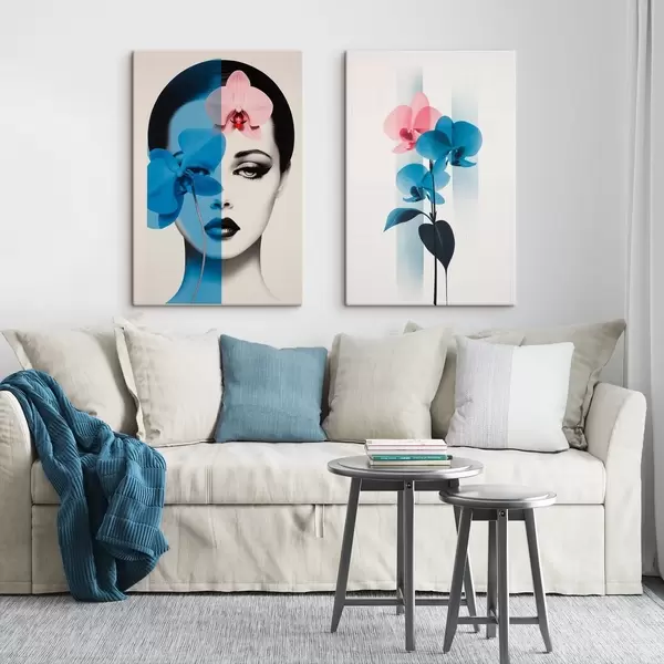 Maalid Abstraktne kunstiportree naisest orhideedega Nr m00818