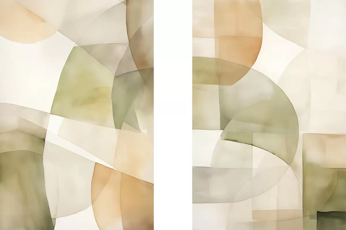 Maalid Abstraktsed akvarelltekstuuriga geomeetrilised kujundid rohelise, pruuni ja beeži toonides Nr m00820