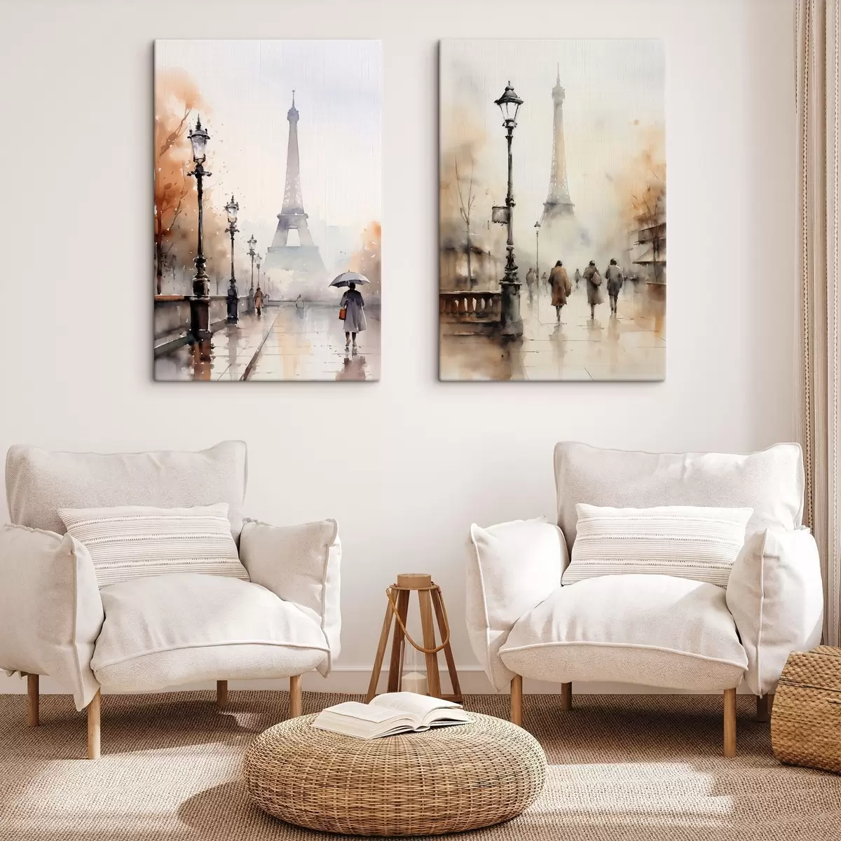 Maalid Vihmane sügispäev Pariisis, taustal Eiffeli torn ja vanaaegsed tänavavalgustid Nr m00821