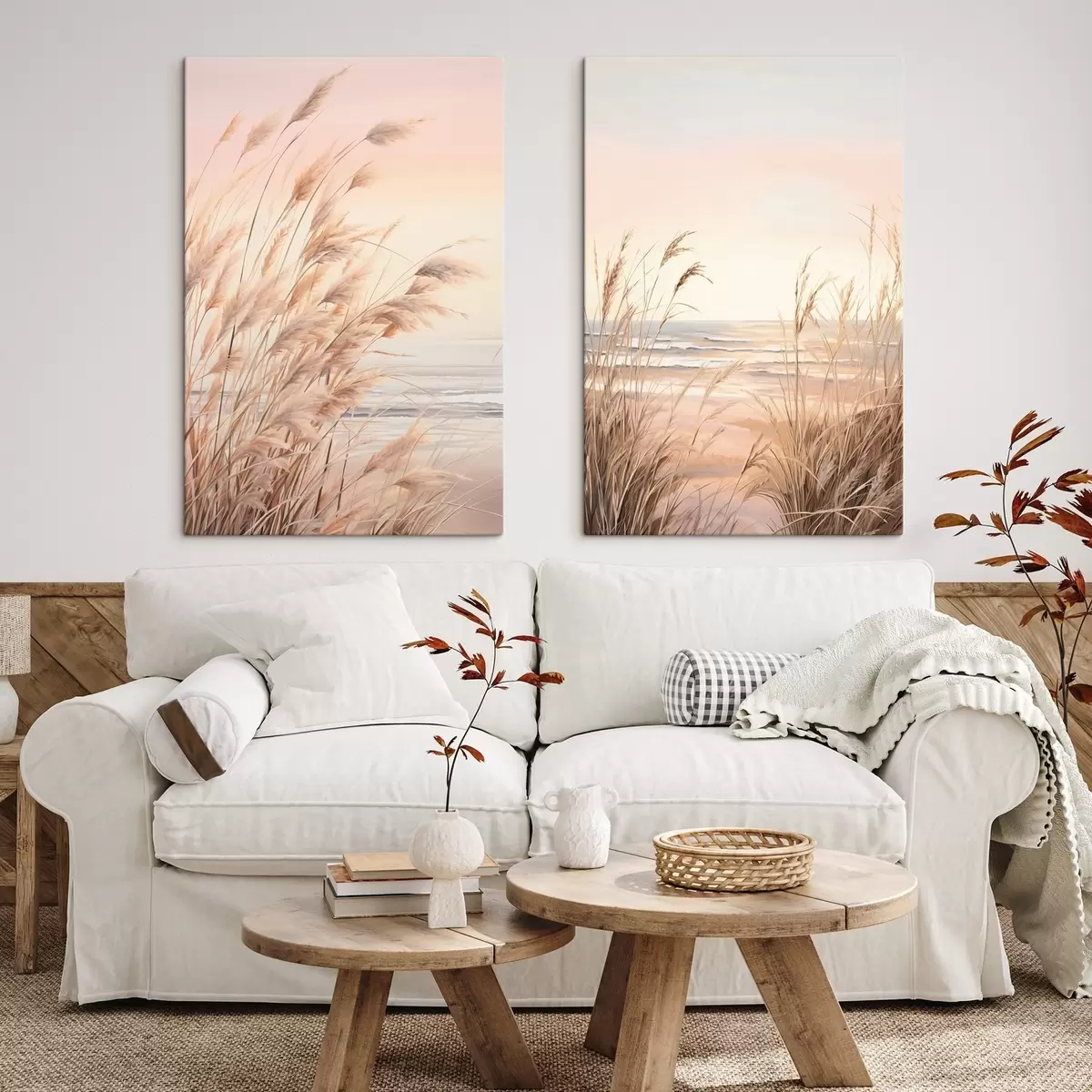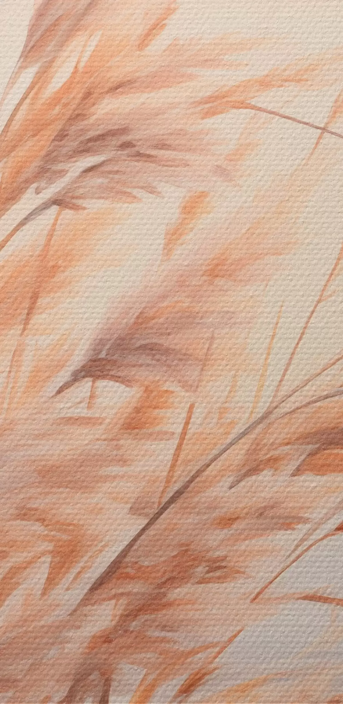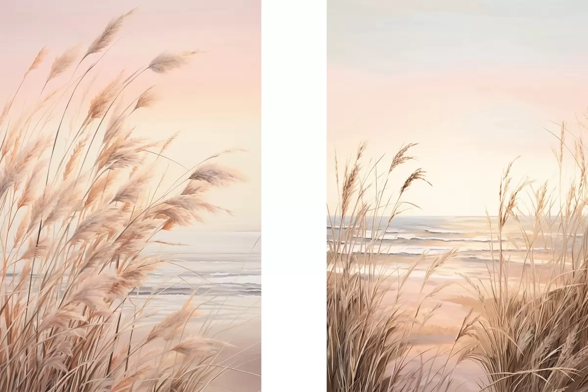Maalid Pastelloranžide toonidega pampasrohi, heleroosa taevas, rahulik maastik Nr m00823