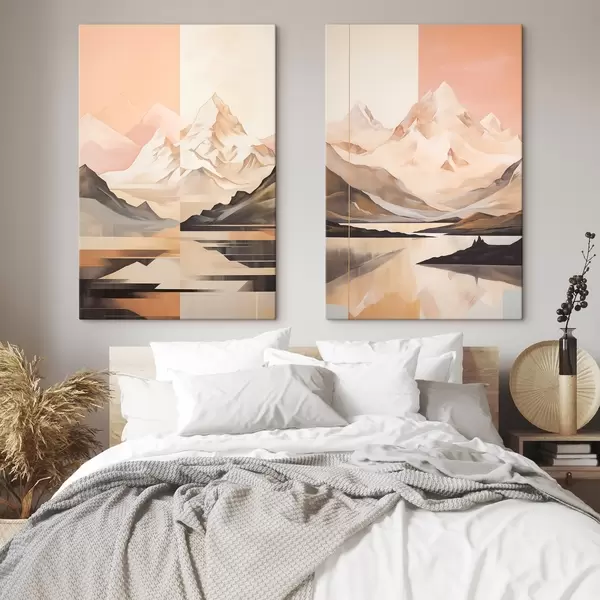 Maalid Abstraktne maastik mägedega ja järvega, pastelltoonid, minimalistlik stiil Nr m00830