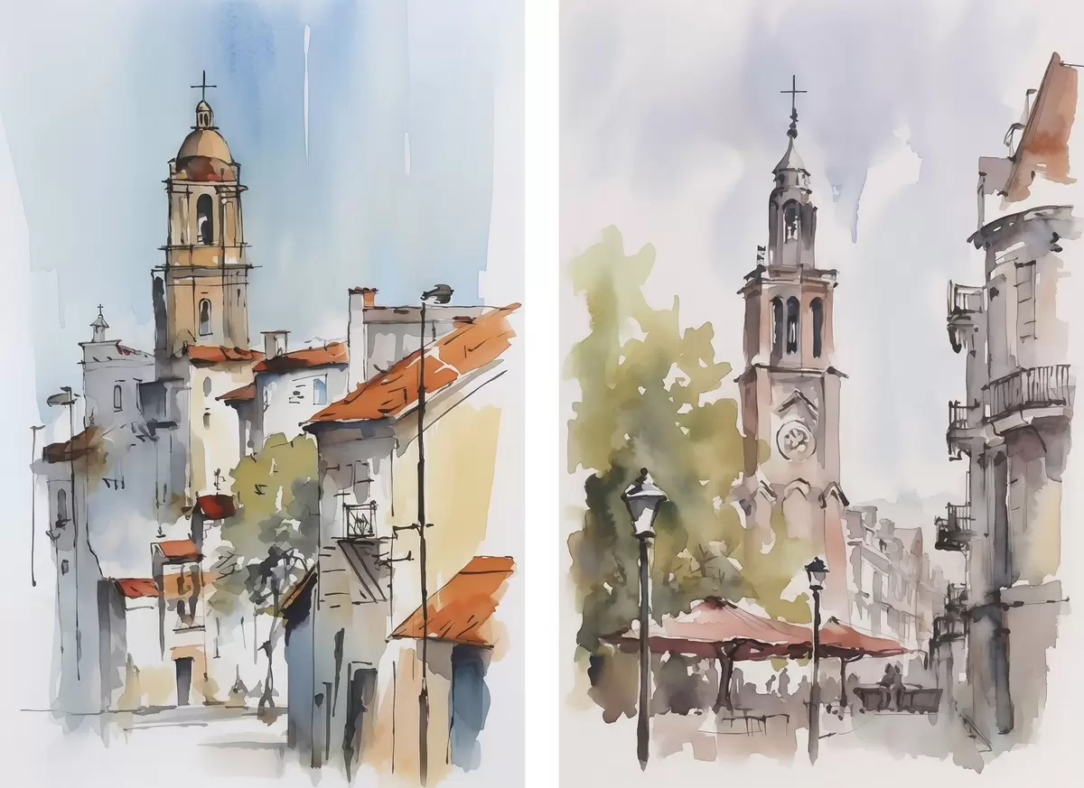 Maalid Linnamaastiku imitatsioon akvarell Nr m00832