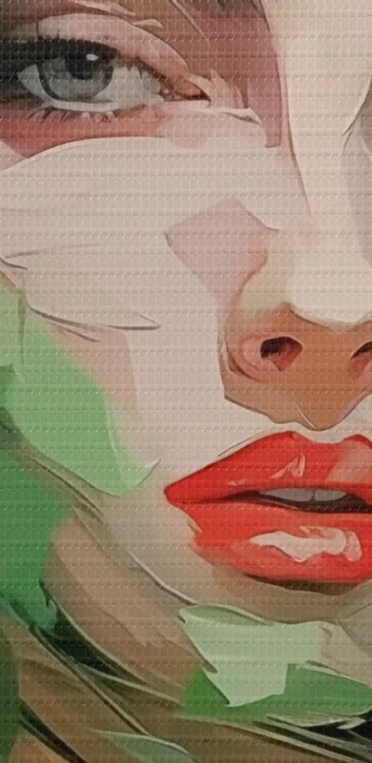 Selle lõuendi peenike niidipunus meenutab professionaalse kunstniku lõuendi pinda.