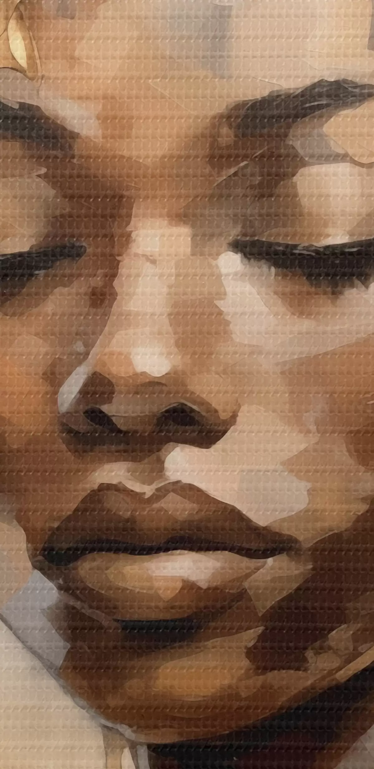 Selle lõuendi peenike niidipunus meenutab professionaalse kunstniku lõuendi pinda.