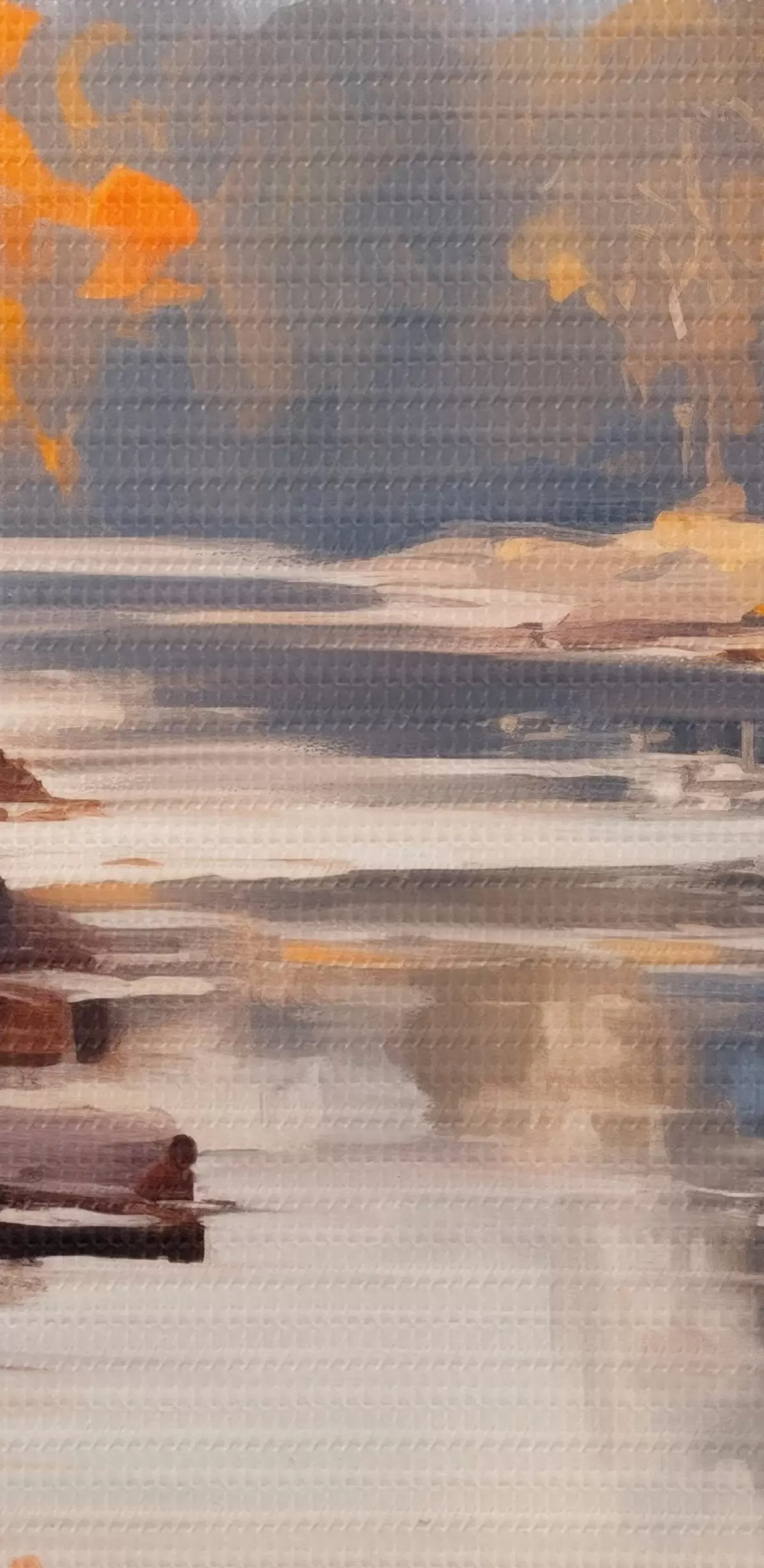 Selle lõuendi peenike niidipunus meenutab professionaalse kunstniku lõuendi pinda.