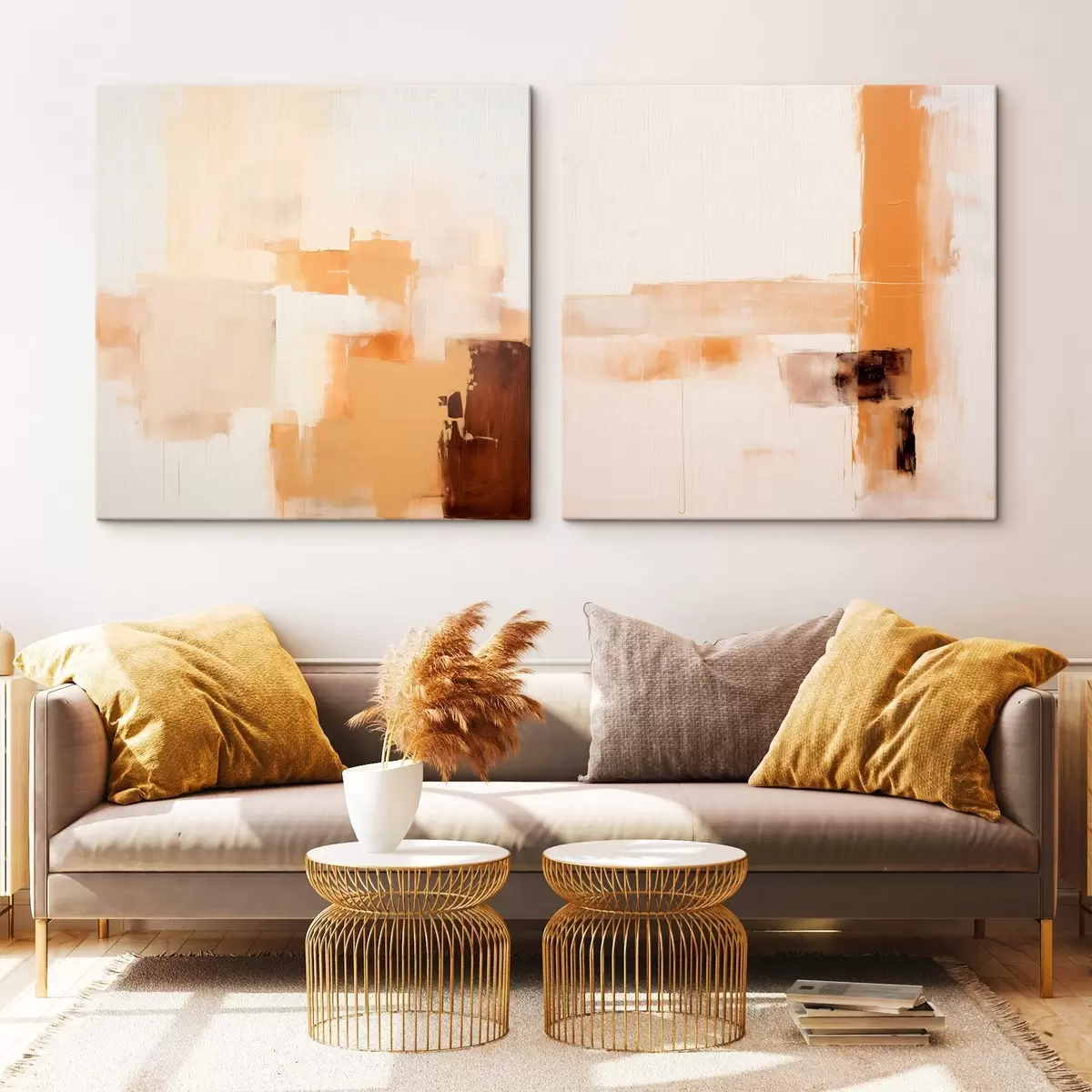 Maalid Abstraktne kaheosaline kompositsioon beežis ja pruunis Nr m00891