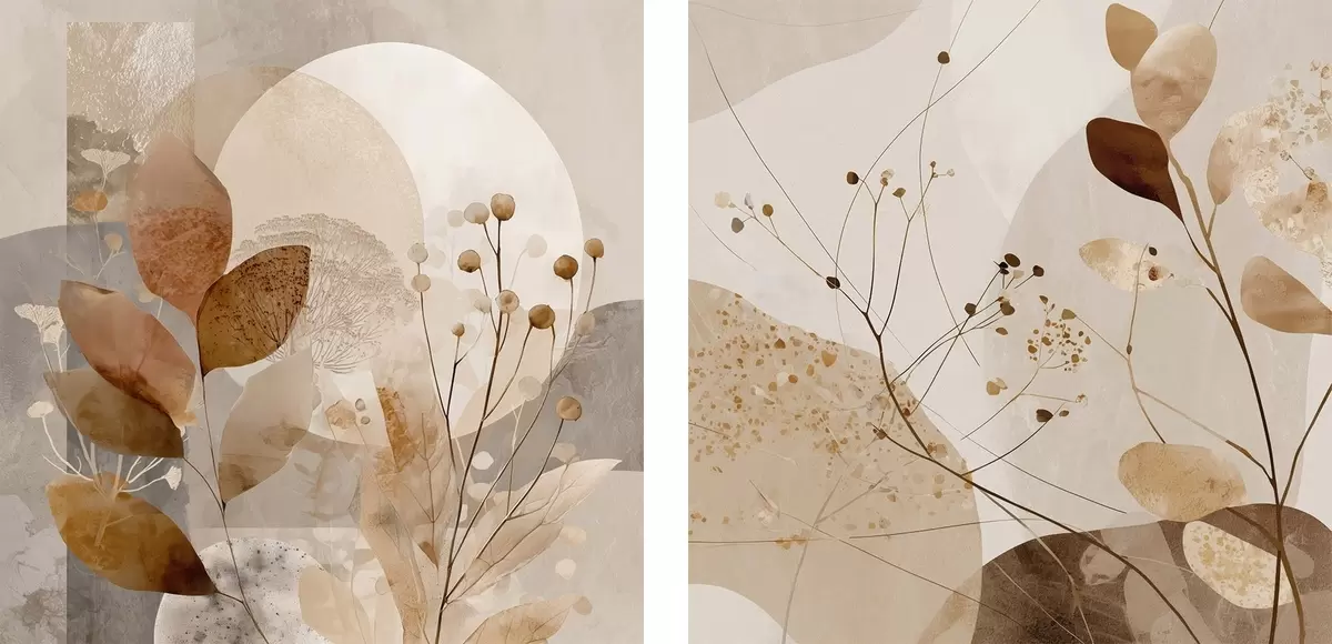 Maalid Abstraktne kaheosaline lillekompositsioon Nr m00892