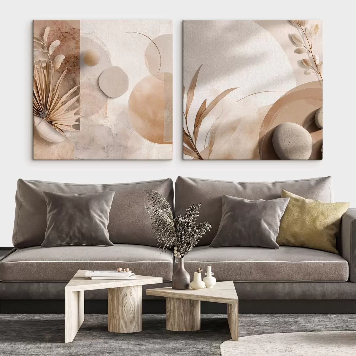 Maalid Kaks lõuendit kuivatatud lehtede ja tekstuuriga kujunditega Nr m00893