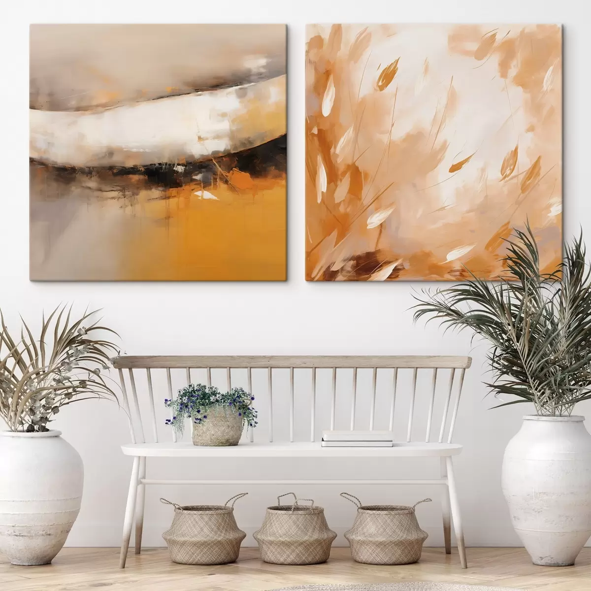 Maalid Abstraktne diptühhon õlimaalistiilis kollase-oranži ja musta toonidega Nr m00897