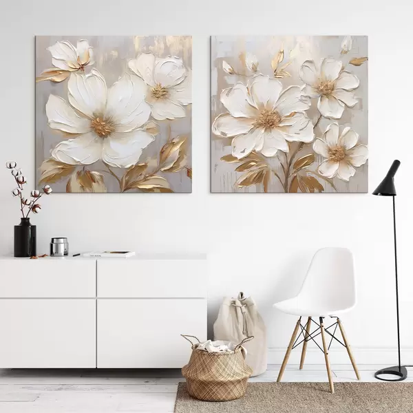 Maalid Diptych suurte lilledega heledates soojades toonides Nr m00927