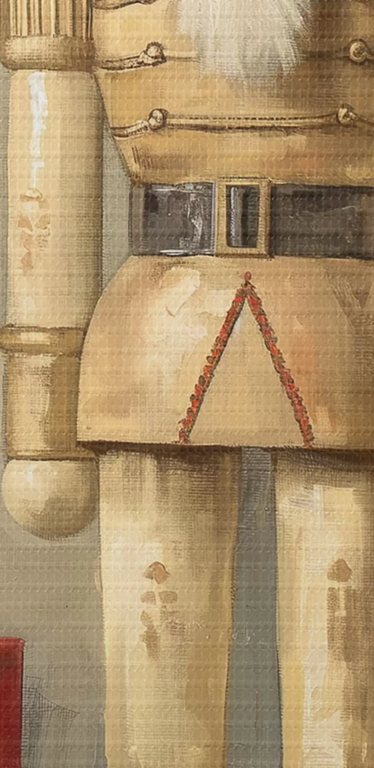 Selle lõuendi peenike niidipunus meenutab professionaalse kunstniku lõuendi pinda.
