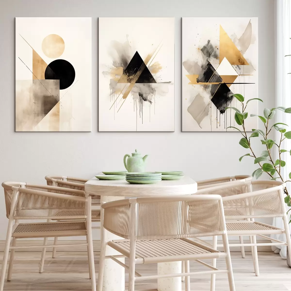 Maalid Geomeetrilised kolmnurgad tindipritsmetega, must ja okker Nr m00963