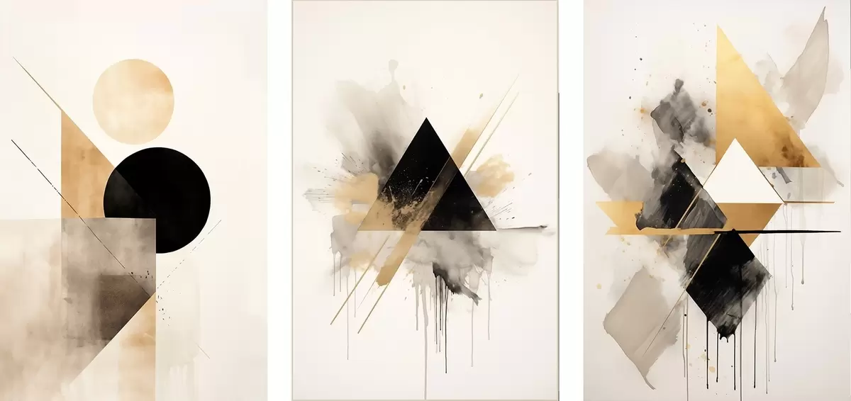 Maalid Geomeetrilised kolmnurgad tindipritsmetega, must ja okker Nr m00963
