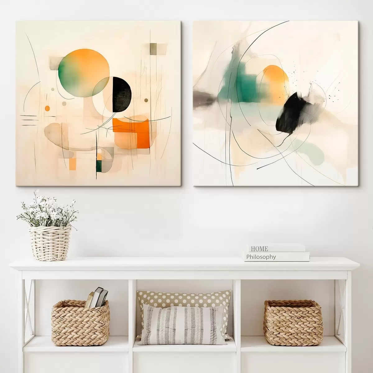 Maalid Abstraktne diptühhon ringikujuliste vormide ja dünaamiliste joontega Nr m00981