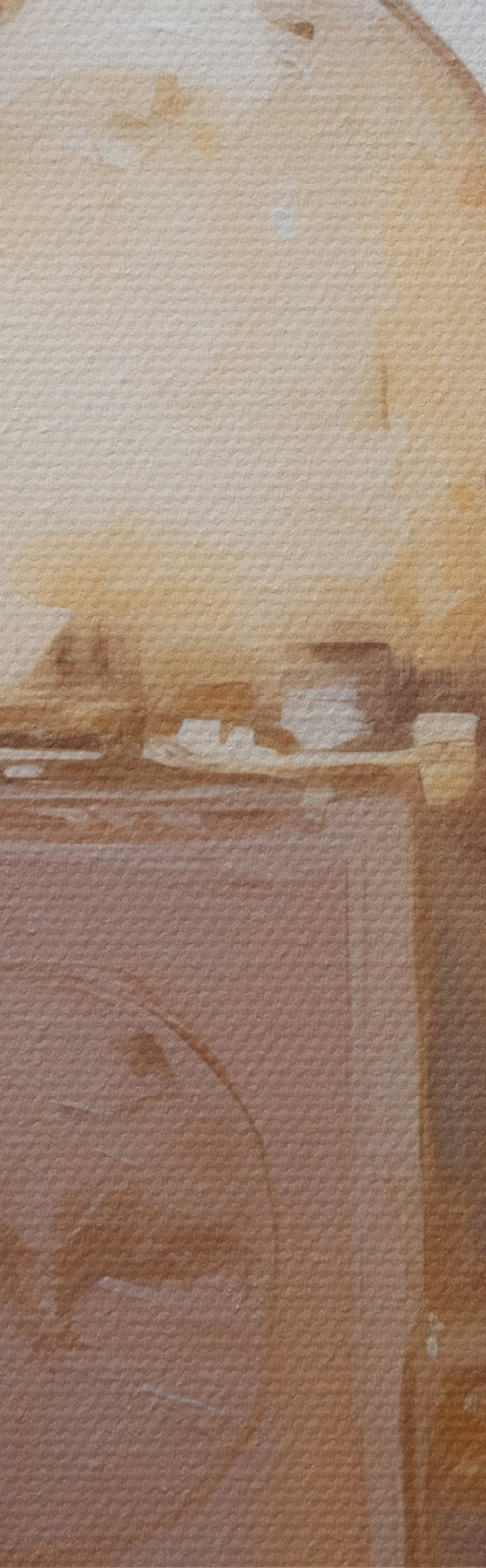 Selle lõuendi peenike niidipunus meenutab professionaalse kunstniku lõuendi pinda.