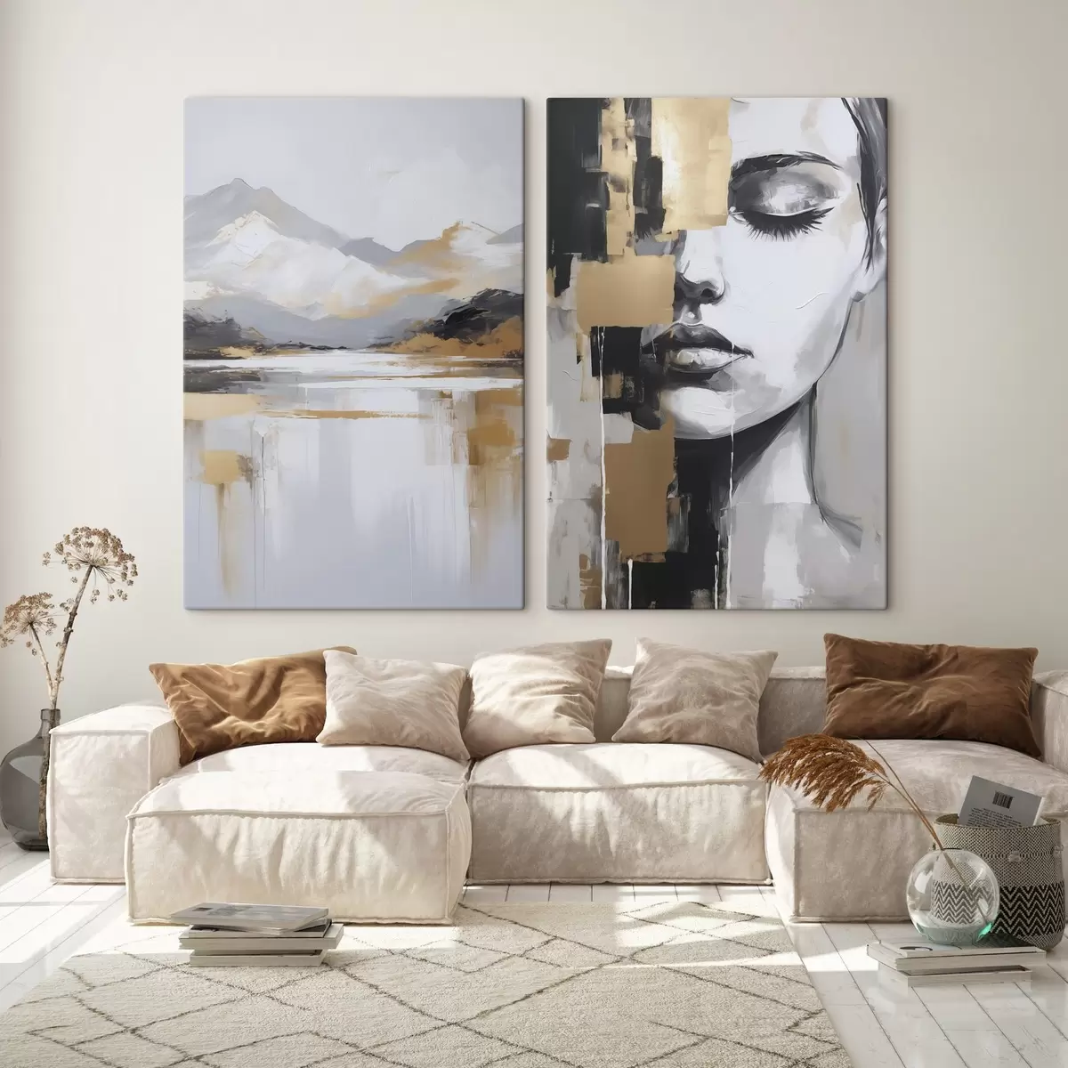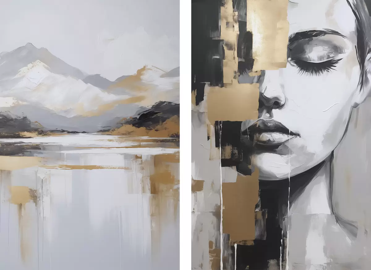 Maalid Abstraktne mägimaastik ja portree Nr m01058