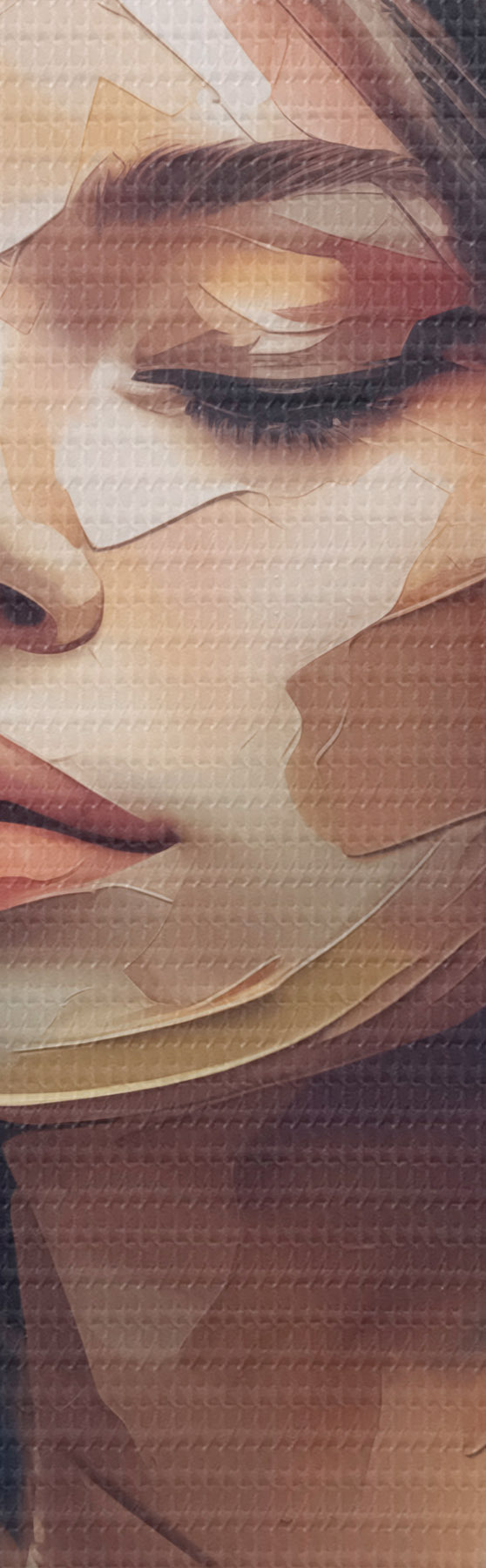 Selle lõuendi peenike niidipunus meenutab professionaalse kunstniku lõuendi pinda.