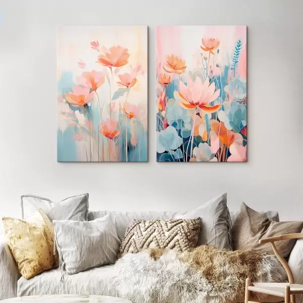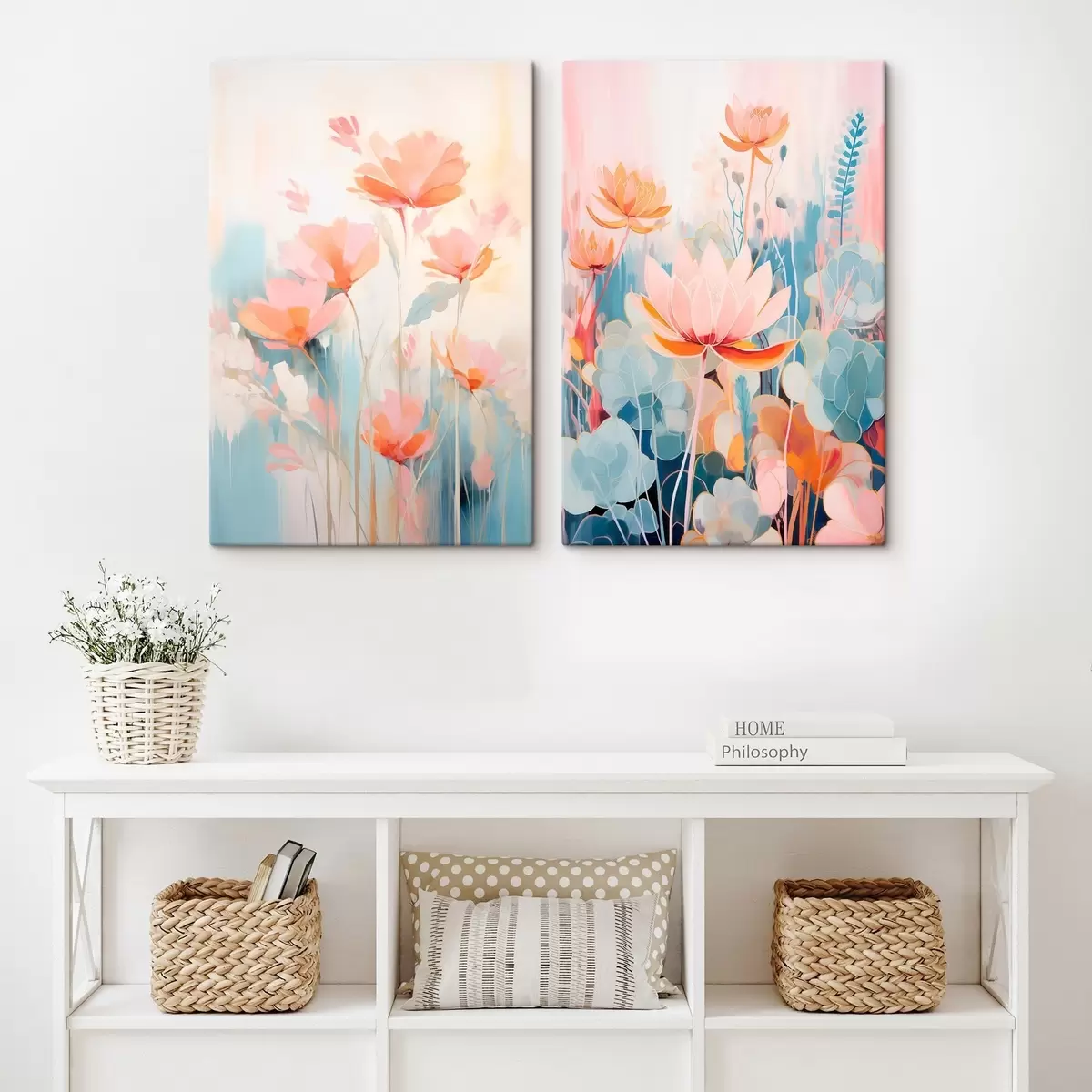 Maalid Lillede akvarellharmoonia roosa-sinises värvipalettis Nr m01084