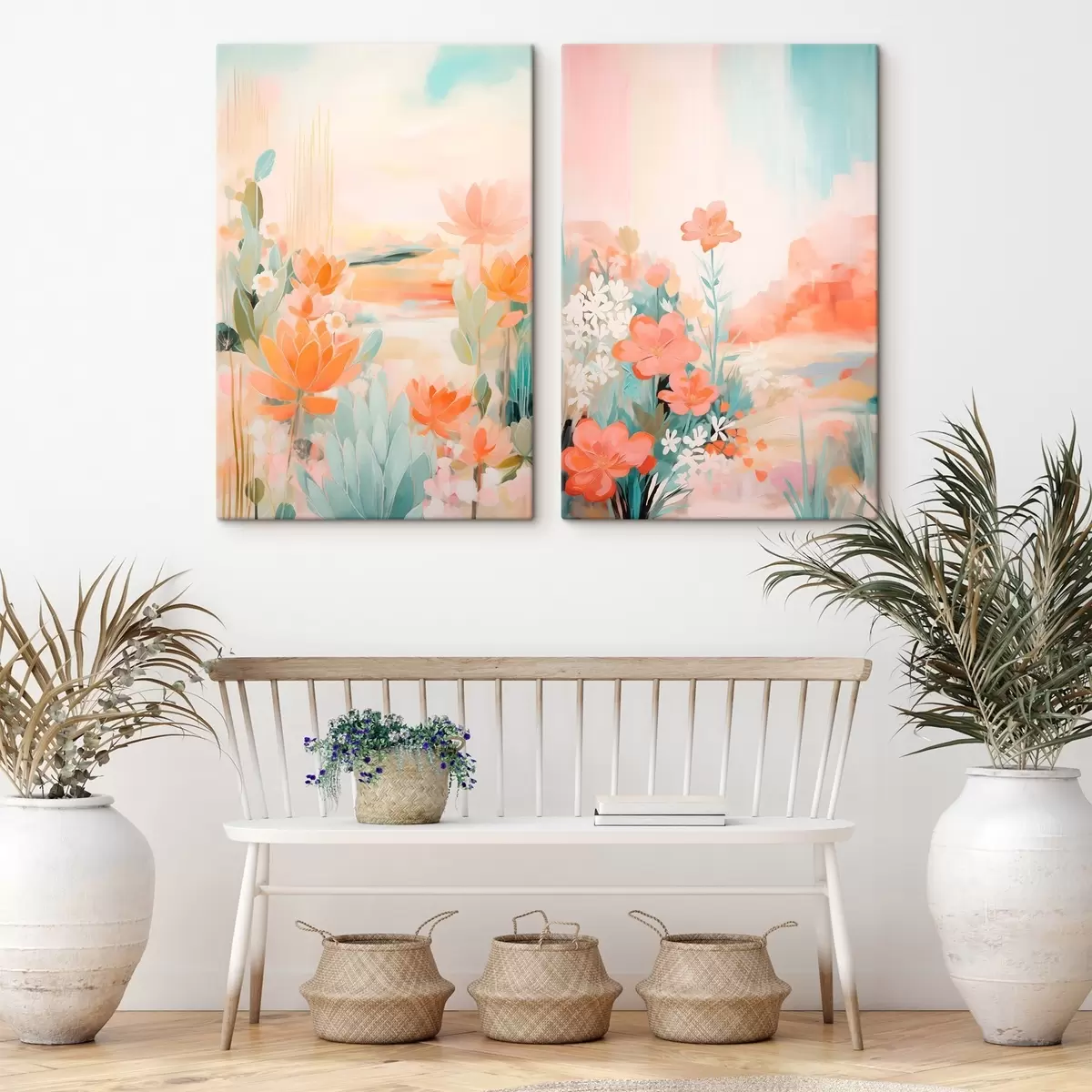 Maalid Pastelltoonides lillemotiivid kerge uduse oru taustal Nr m01085