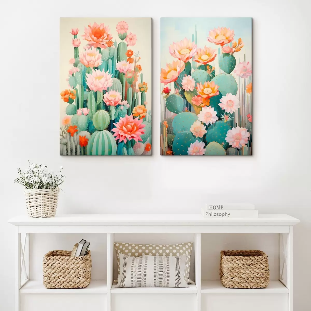 Maalid Suureõielised kaktused, pastelltoonid ja rahulikkus Nr m01086