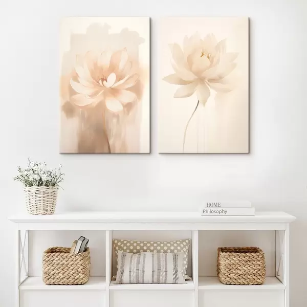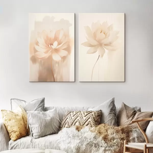 Maalid Lilleline kompositsioon soojades beežides toonides, kergete pintslitõmmetega ja õhulise taustaga Nr m01087