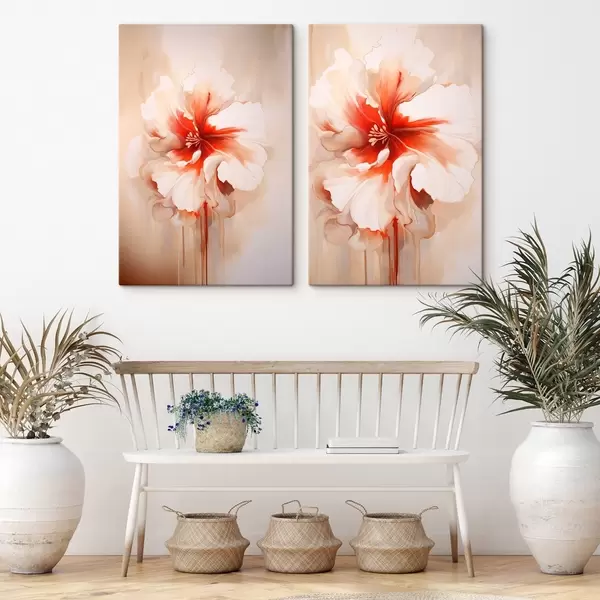 Maalid Valged korallõied abstraktsel taustal, rahulik kompositsioon Nr m01089